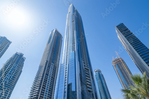© song, Fototapeta premium Modern Skyscrapers Against a Blue Sky