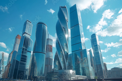© song, Fototapeta premium Modern Skyscrapers Against a Blue Sky