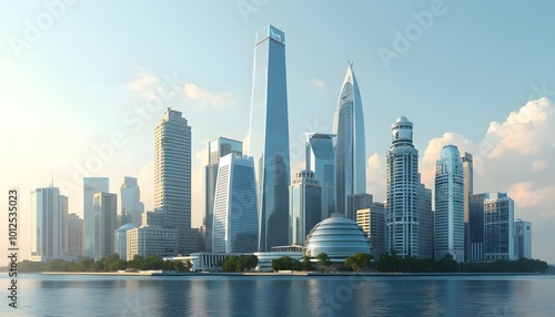 © Mounir, Fototapeta premium Modern skyscrapers by the waterfront