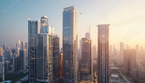 © Mounir, Fototapeta premium Modern skyscrapers by the waterfront