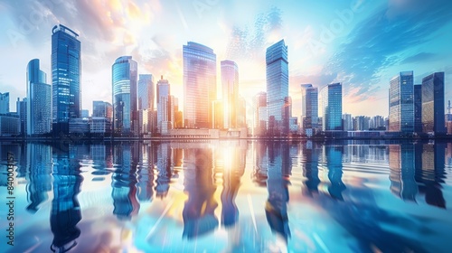 Fototapeta premium modern skyscrapers of a smart city, futuristic financial district with buildings and reflections