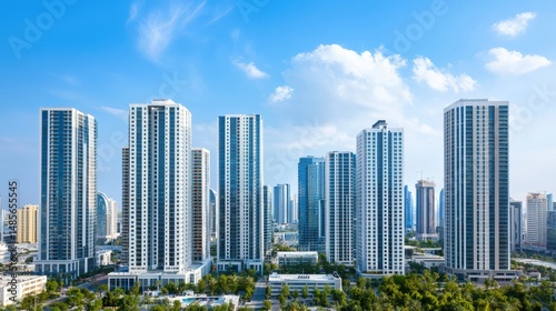 Fototapeta premium Modern skyscrapers reaching for the sky in a vibrant urban landscape