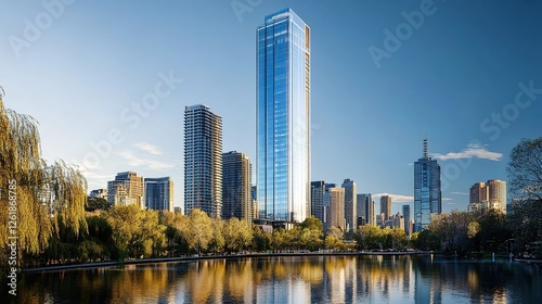 Fototapeta premium Modern Skyscrapers Reflecting in Calm City Water