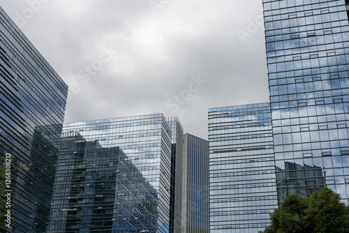 © Dong, Obraz premium Modern Skyscrapers Reflecting the Sky