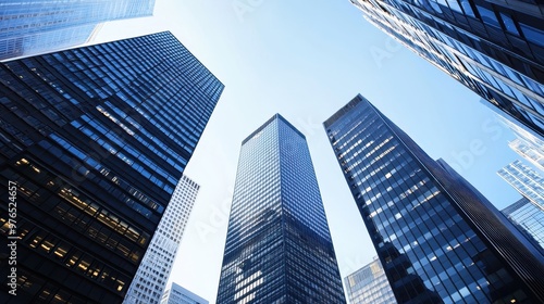 Fototapeta premium Modern Skyscrapers with Blue Glass Facades in Urban City Skyline