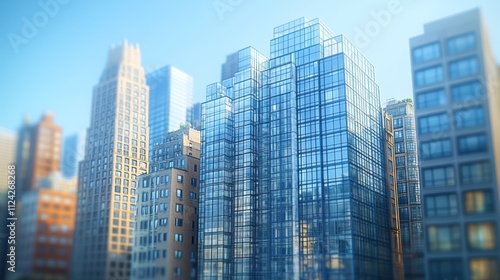 © Dikina, Obraz premium Modern skyscrapers with glass facades in a cityscape.