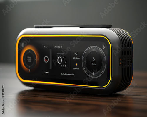 © frank29052515, Fototapeta premium Modern Smart Air Quality Monitor 3D Render with Digital Display and Sensors