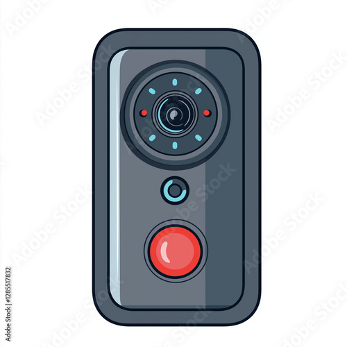 Fototapeta premium Modern smart doorbell with a camera, microphone, and red button. Ideal for smart home-themed visuals, security illustrations, and technology designs