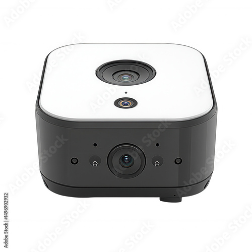 © Raian, Obraz premium Modern Smart Home Security Camera System Advanced Technology Multiple Lenses High Definition Surveillance Device Elegant Design Reliable Protection Innovative Home Monitoring System Powerful Features