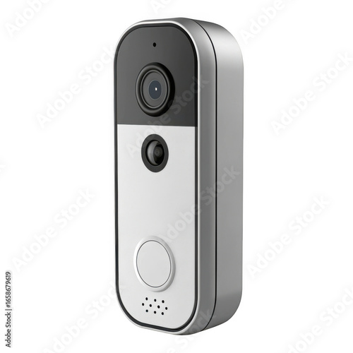 Fototapeta premium Modern smart video doorbell with camera and button for home security isolated...