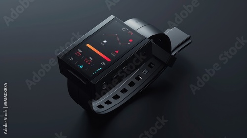 Obraz premium Modern smartwatch with a black strap and a digital display showing heart...