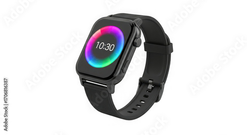 Obraz premium Modern smartwatch with vibrant rainbow digital display and black band...