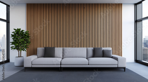 Fototapeta premium Modern sofa design in urban loft interior decor minimalist living space...