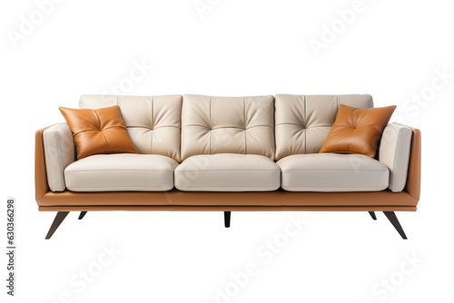 Fototapeta premium Modern sofa with pillows isolated on transparent background.for decorative at home modern interior design.generative ai