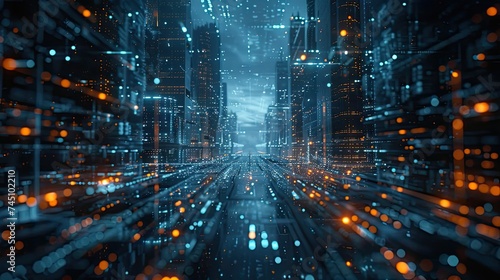 Obraz premium Modern software and bot technology in a smart, virtual world, depicting innovative support systems in business, captured in Documentary Photography style