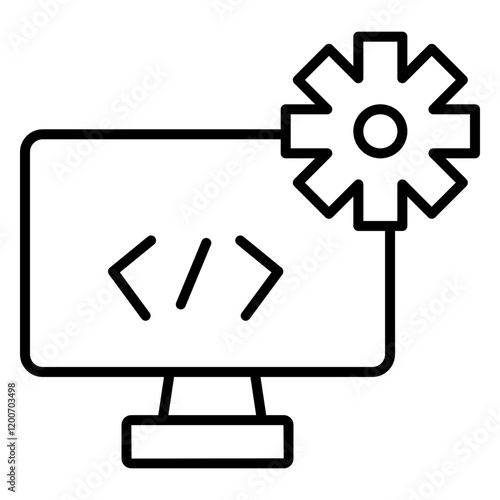 Obraz premium Modern software development icon featuring symbols like code, cloud, servers,...
