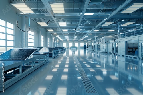 Fototapeta premium Modern Solar Panel Manufacturing Plant Showcasing Advanced Renewable Energy Technology