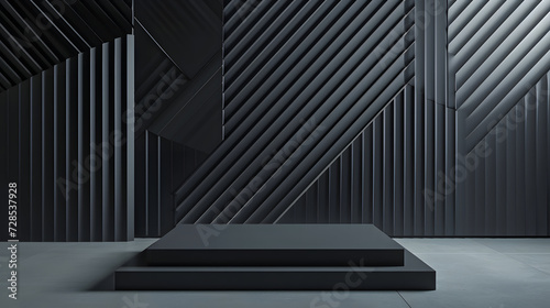 © Helfin, Fototapeta premium modern solid black podium with geometric background