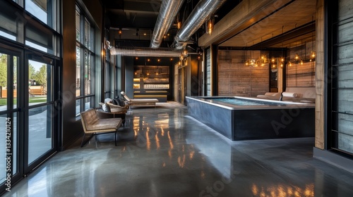 Fototapeta premium Modern Spa Relaxation: Indoor Pool and Lounge Area