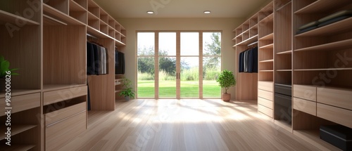 © Arthur Constantine, Fototapeta premium Modern Spacious Closet with Natural Light and Greenery