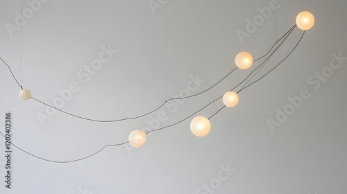 © rehan, Obraz premium Modern spherical light fixtures hang elegantly against a wall