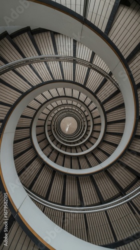 © AI Banya, Fototapeta premium Modern Spiral Staircase Architecture Looking Down building
