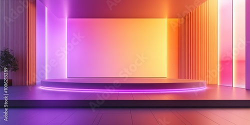 Fototapeta premium Modern stage with vibrant lighting, creating a dynamic atmosphere for presentations or performances.