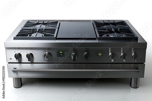© Diki prayoga, Obraz premium Modern Stainless Steel Gas Range with Induction Cooktop