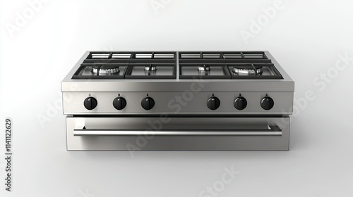 Fototapeta premium Modern Stainless Steel Gas Stove with Two Burners and Oven Feature