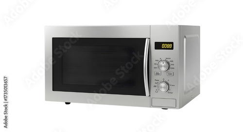 © Saim, Fototapeta premium Modern Stainless Steel Microwave Oven Product Shot Isolated on White Background