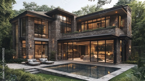Obraz premium Modern stone house with pool.