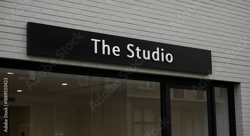© M.Rivalsyah, Fototapeta premium Modern studio sign on brick building facade