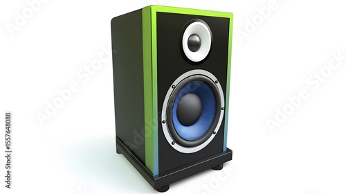 © sahadat, Obraz premium Modern Stylish Green Blue Studio Speaker 3D Render