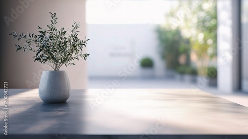 © CLOVER BACKGROUND, Fototapeta premium Modern Stylish Office Mockup with Sleek Table and Greenery