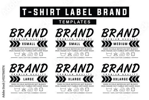 Fototapeta premium Modern T-Shirt Label Template. Editable Size Tags with Laundry Care...