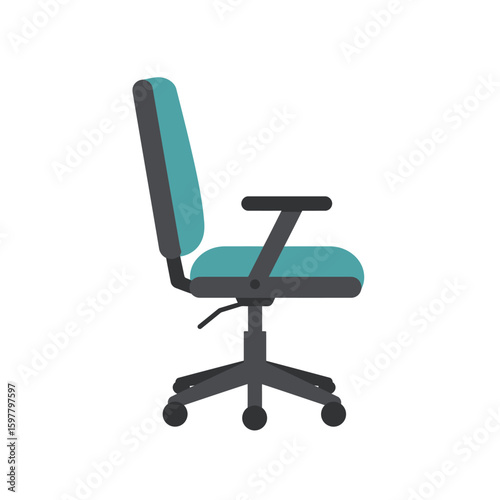 © SNACreatives, Fototapeta premium Modern Teal Office Chair with Armrests and Rolling Base.