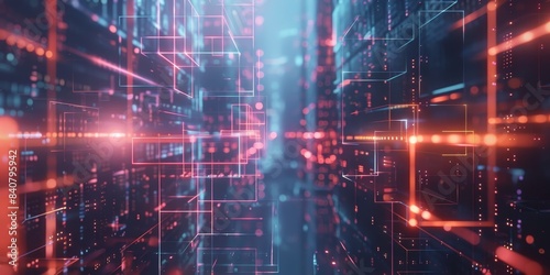 © kwanchaift, Fototapeta premium Modern tech design featuring a minimalist grid pattern and dynamic gradient, ideal for illustrating innovative digital concepts