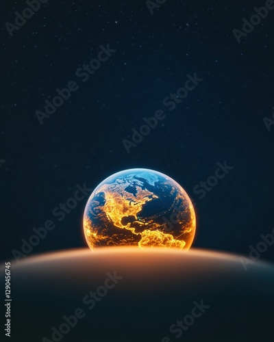 © Ryzhkov, Obraz premium Modern Tech Visualization of Earths Nocturnal City Lights Luminous Space Globe with Atmospheric Glow for Digital Connectivity and Business Innovation