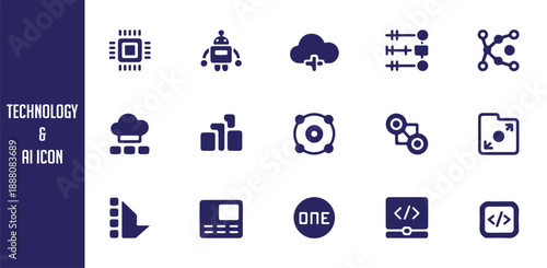 Obraz premium Modern technology and AI icons collection including cloud computing,...