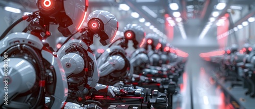 © Media Srock, Fototapeta premium Modern Technology Concept : Futuristic and efficient assembly line captured in soft overhead lighting