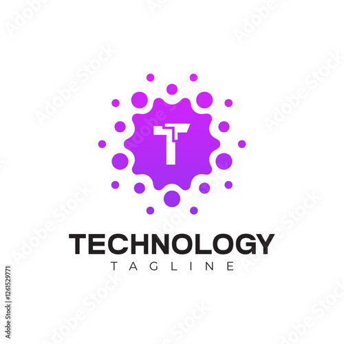 Fototapeta premium Modern Technology Logo - Letter T and Purple Digital Dots Vector Design