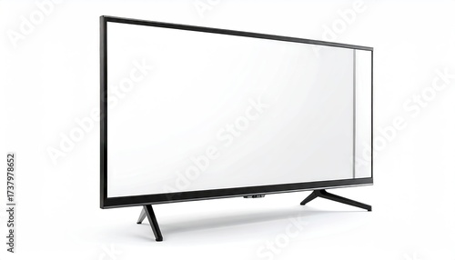 © Vito, Naklejka premium Modern Television Isolated on White Background with Blank Screen in Studio Lighting