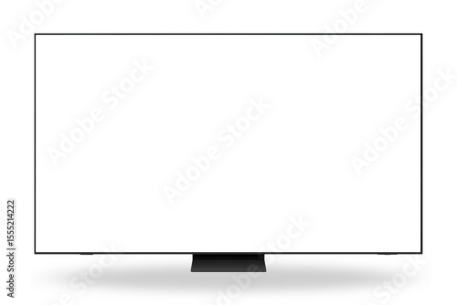 © Tsaeat, Naklejka premium Modern television screen mockup with a black display, ideal for showcasing digital content on a sleek, frameless smart TV.