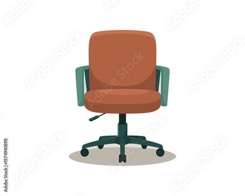 Fototapeta premium Modern Terracotta Office Chair with Teal Armrests and Black Base Isolated on...