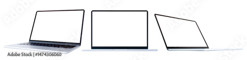 © Kaspars Grinvalds, Obraz premium Modern thin laptop computer in different angles, screen mockups, isolated transparent background