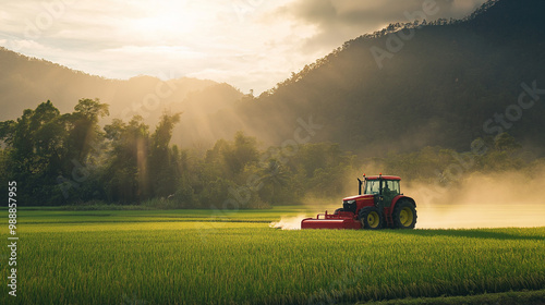 © meisan, Fototapeta premium Modern Tractor Cultivating Fertile Farmlands