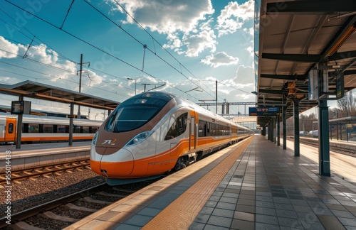 © BISMILAH, Fototapeta premium Modern Train at a Railway Station Platform