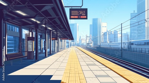 © SETSU ST, Obraz premium Modern Train Station Platform in Urban Environment