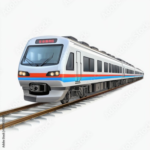 © jambulart, Naklejka premium Modern train travels on tracks, white background.