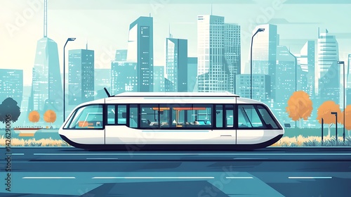 Naklejka premium Modern Tram with Cityscape, and Urban Transit.